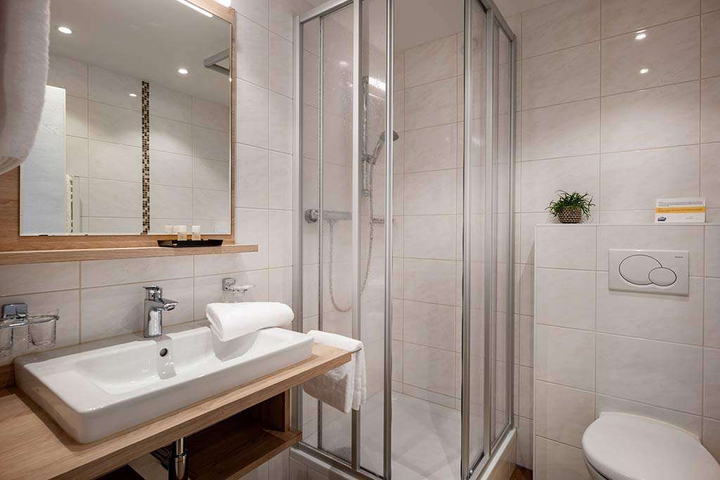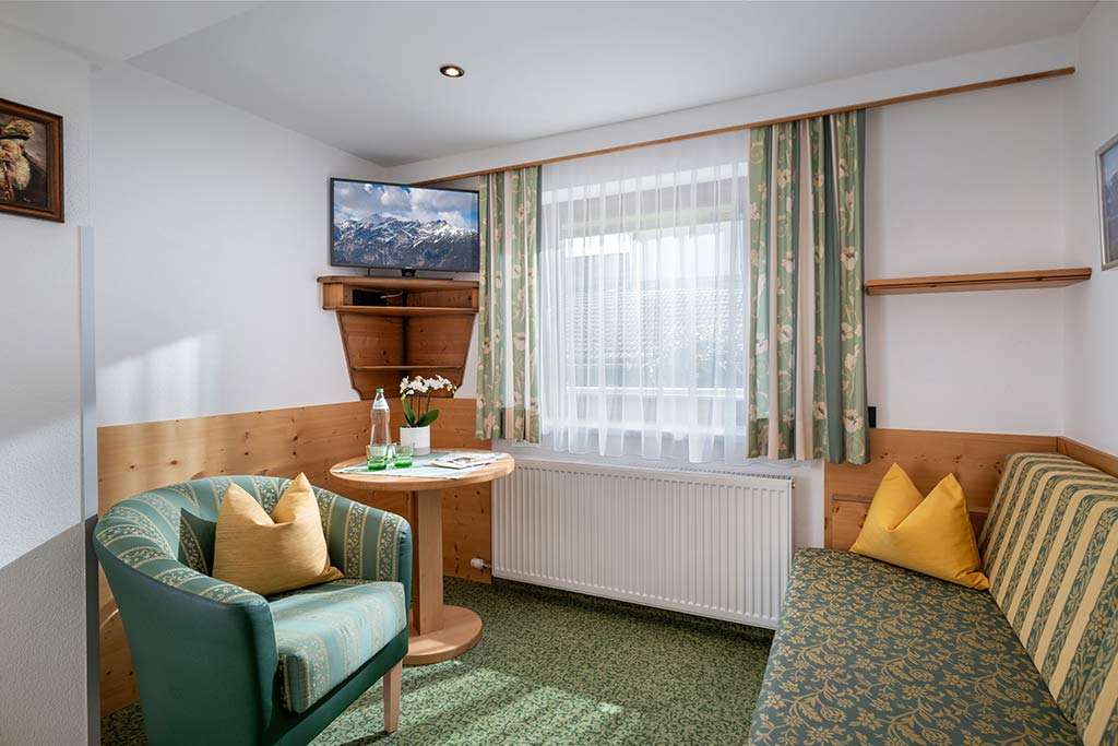 Zimmer für 2+1 Personen ca. 20 m² mit Balkon Ob mit Kind oder Freunden, hier findet jeder seinen Platz zum Wohlfühlen. Ausstattung Doppelbett komfortables Zusatzbett Sitzecke Dusche mit WC Handtücher, Shampoo und Seife Balkon mit Möbel