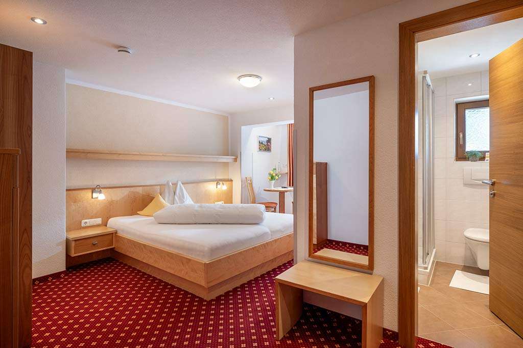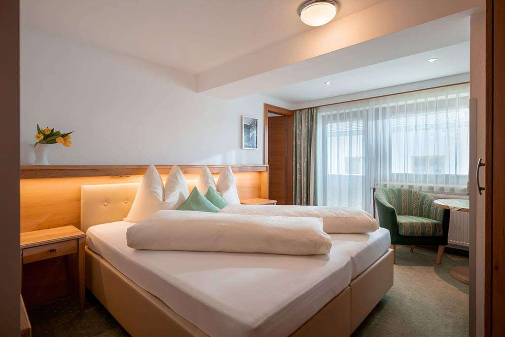 Zimmer für 2 Personen ca. 20 m² mit Balkon Dieses Zimmer lädt Sie ein, den Tag mit einem Blick auf die Tiroler Natur ausklingen zu lassen. Ausstattung Komfortbett Sitzecke Dusche mit WC Handtücher, Shampoo und Seife Balkon mit Möbel